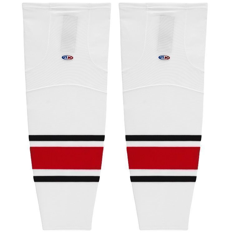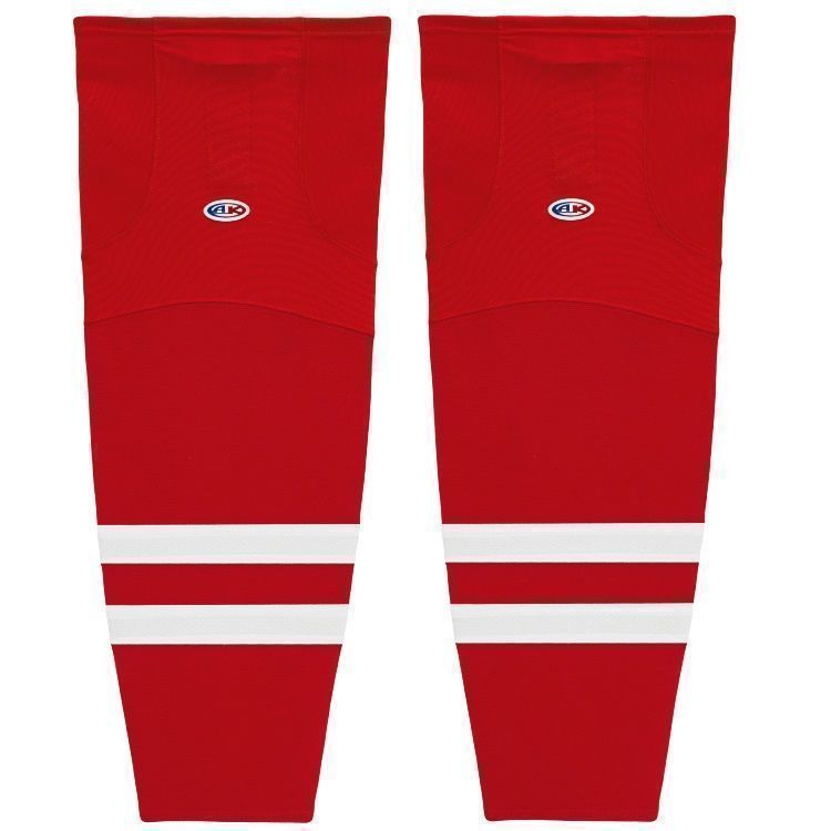 Carolina Hurricanes air knit hockey socks in home and away styles. Carolina Hurricanes air-knit hockey socks in stock in adult, intermediate and youth sizes in authentic Hurricanes red and white sewn striping. Athletic Knit HS2100 air-knit hockey socks feature pro weight edge style air knit fabric with Dry-Flex wicking stretch panels and two sewn Velcro tabs.