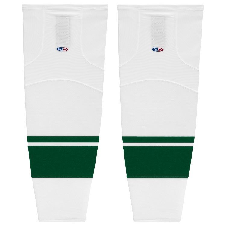 Minnesota Wild air knit hockey socks in home, away and 3rd styles. Minnesota Wild air-knit hockey socks in stock in adult, intermediate and youth sizes in authentic Wild green, red and creme sewn striping. Athletic Knit HS2100 air-knit hockey socks feature pro weight edge style air knit fabric with Dry-Flex wicking stretch panels and two sewn Velcro tabs.