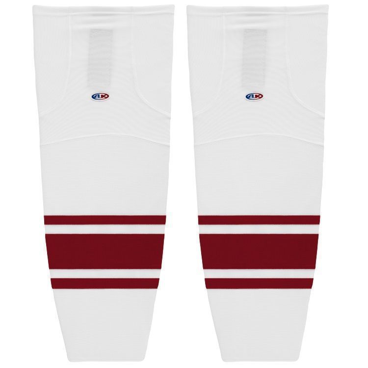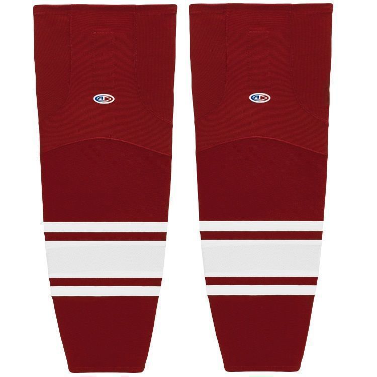 Phoenix Coyotes air knit hockey socks in home and away styles. Phoenix Coyotes air-knit hockey socks in stock in adult, intermediate and youth sizes in authentic Coyotes cardinal and white sewn striping. Athletic Knit HS2100 air-knit hockey socks feature pro weight edge style air knit fabric with Dry-Flex wicking stretch panels and two sewn Velcro tabs.