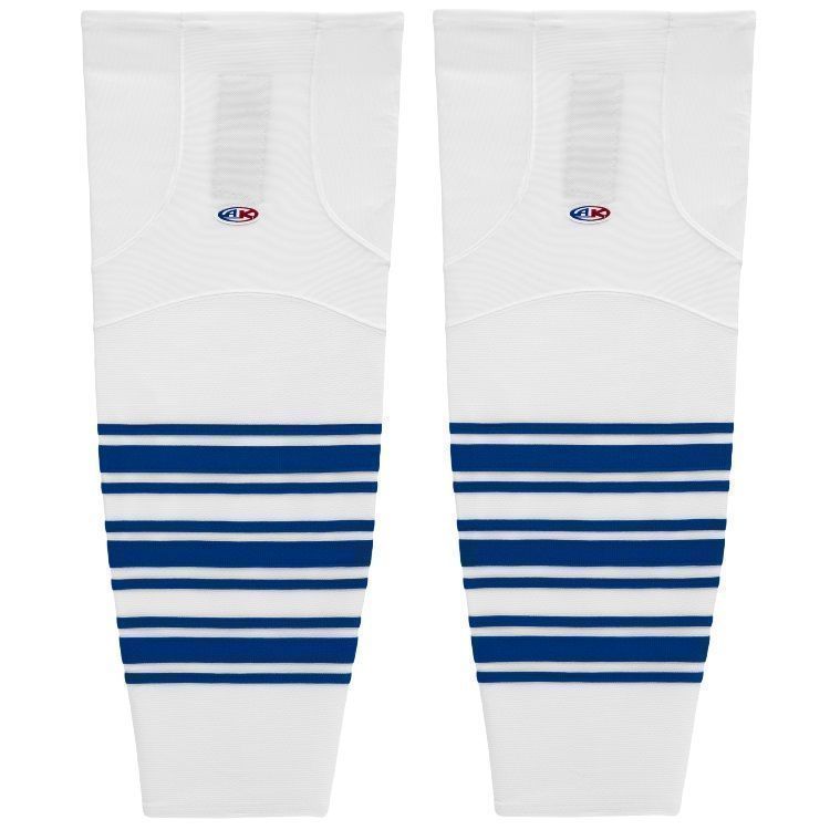 Toronto Maple Leafs air knit hockey socks in home and away styles. Toronto Maple Leafs air-knit hockey socks in stock in adult, intermediate and youth sizes in authentic Maple Leafs sewn striping. Athletic Knit HS2100 air-knit hockey socks feature pro weight edge mesh air knit fabric with Dry-Flex wicking stretch panels and two sewn Velcro tabs.