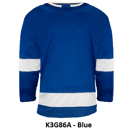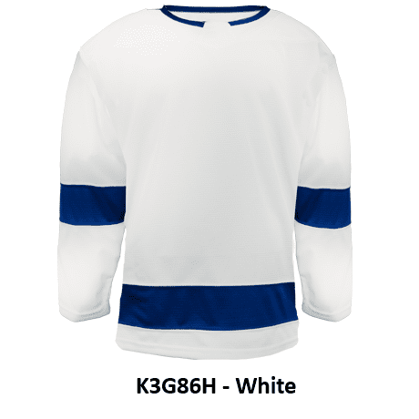 Kobe K3G Tampa Bay Lightning blank hockey jerseys feature pro-weight Kobe K3G air-knit fabric with an authentic royal and white striping pattern. Kobe K3G86A K3G86H home and away Lightning hockey jerseys also feature double material on the shoulders / elbows, edge necks and cover-stitched seams. Choose from youth through adult goalie sizes. Made in Canada.