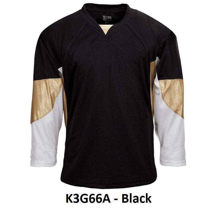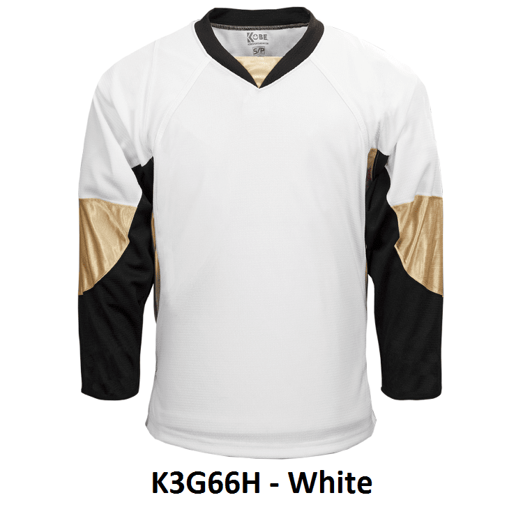 Kobe K3G Pittsburgh Penguins blank hockey jerseys feature pro-weight Kobe K3G air-knit fabric with an authentic striping pattern. Kobe K3G66A K3G66H home and away Pittsburgh Penguins hockey jerseys also feature double material on the shoulders / elbows, v-necks with inlay and cover-stitched seams. Choose from youth through adult goalie sizes. Made in Canada.