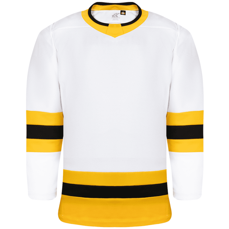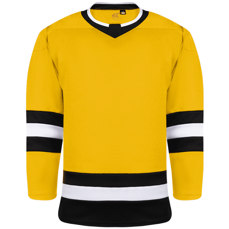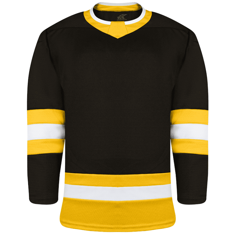 Kobe K3GLBOS blank hockey jerseys feature pro weight Kobe K3G air-knit fabric with Boston Bruins team colors. Kobe K3GLBOS home, away and 3rd gold league hockey jerseys also feature single material on the shoulders / elbows, K3G crew neck with inlay, and double needle stitching. Choose from youth through adult goalie sizes.