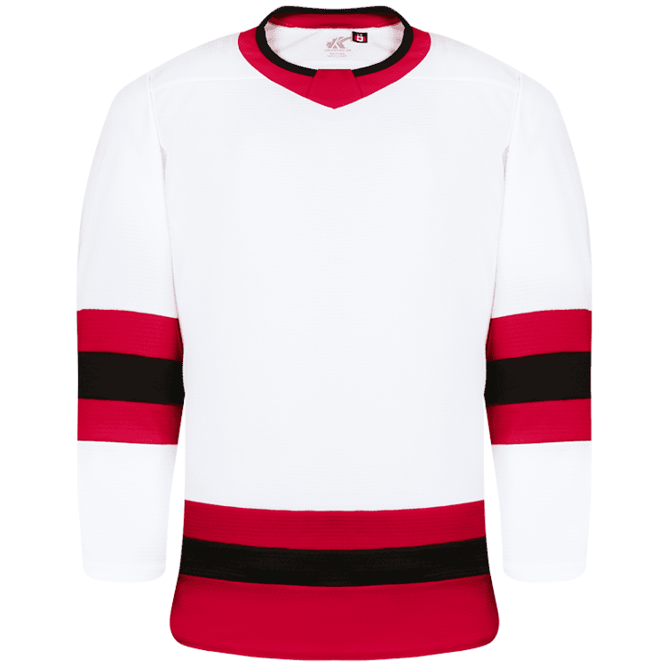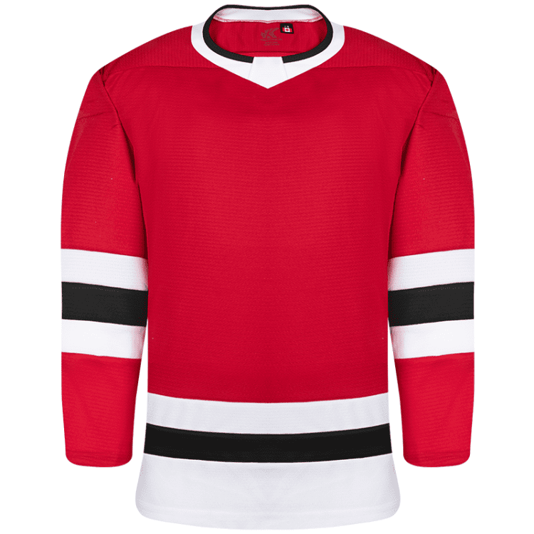 Kobe K3GLCHI blank hockey jerseys feature pro weight Kobe K3G air-knit fabric with Chicago Blackhawks team colors. Kobe K3GLCHI home and away league hockey jerseys also feature single material on the shoulders / elbows, K3G crew neck with inlay, and double needle stitching. Choose from youth through adult goalie sizes.