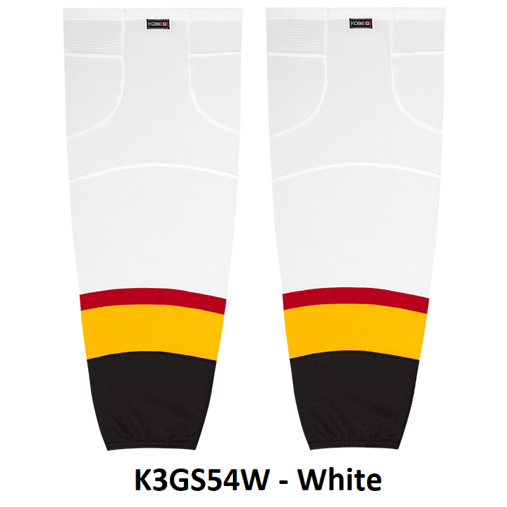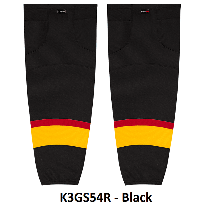 Vancouver Canucks vintage hockey socks in Kobe K3G jersey fabric with velcro tabs and elastic cuffs. Kobe K3GS54R Vancouver Canucks edge mesh hockey socks feature a pro quality ergonomic fit with authentic vintage Canucks colors and sewn striping. Choose from adult, intermediate and youth sizes. Made in Canada.