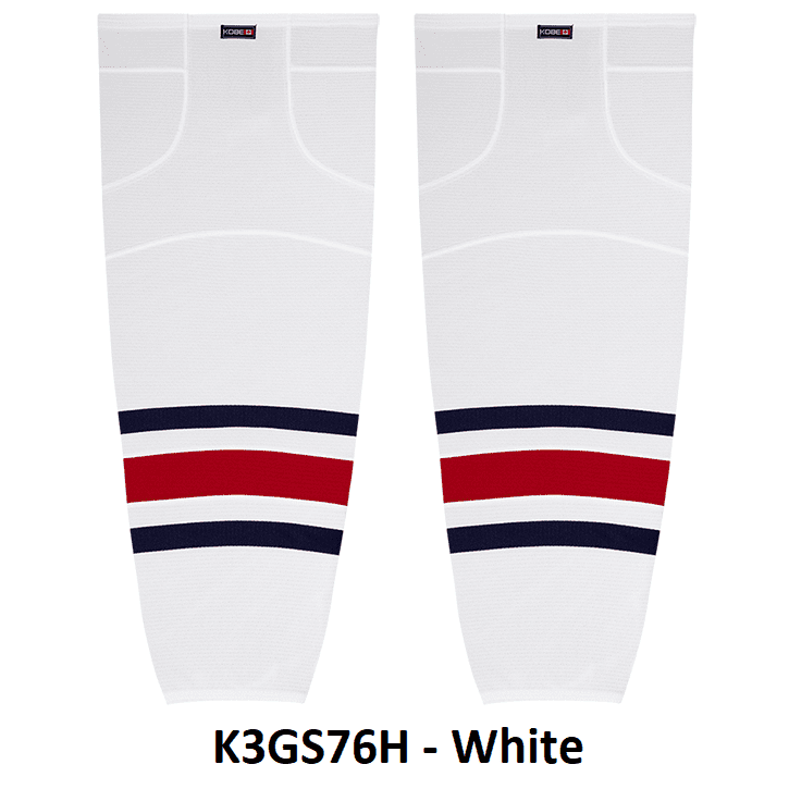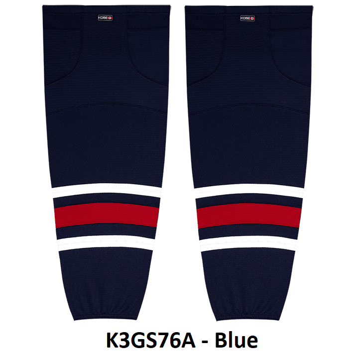 Winnipeg Jets Heritage hockey socks in Kobe K3G jersey fabric with velcro tabs and elastic cuffs. Kobe K3GS76 Winnipeg Jets edge mesh hockey socks feature a pro quality ergonomic fit with authentic Winnipeg Heritage colors. Choose from adult, intermediate and youth sizes. Made in Canada.