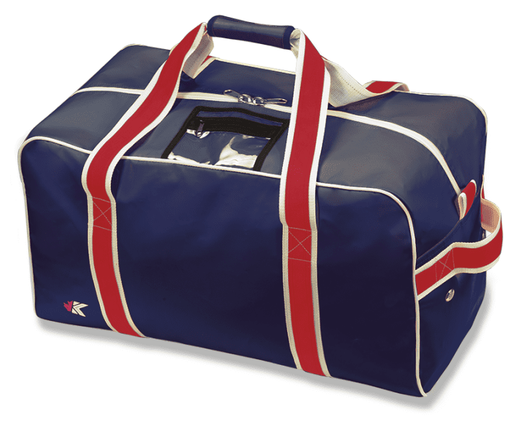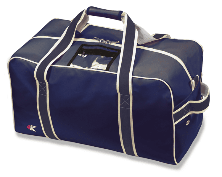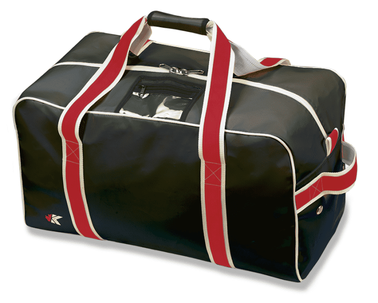 Kobe HBPVC Sin Bin team hockey bag features PVC coated 750 denier polyester for maximum durability. Kobe Sin Bin hockey bag comes in 24 (youth), 28 (junior), 31 (senior) and 42 (goalie) inch lengths, top zipper opening, pvc wrapped handle, side handle, durable PVC bottom, 4 side ventilation grommets, internal utility pocket, wide nylon webbing straps, and a clear I.D. window.