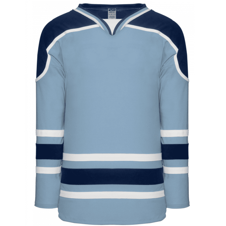 Maine Bears blank hockey jerseys feature pro-weight AK-Knit fabric with a authentic University of Maine striping pattern. AK MAI340B MAI341B MAI355B home, away and 3rd Maine blank hockey jerseys also feature 2-layers of material on the shoulders / elbows, a v-neck with inlay design and a rounded bottom hem. Buy blank or customize with screen printing or tackle twill. Choose from youth through adult goalie sizes.