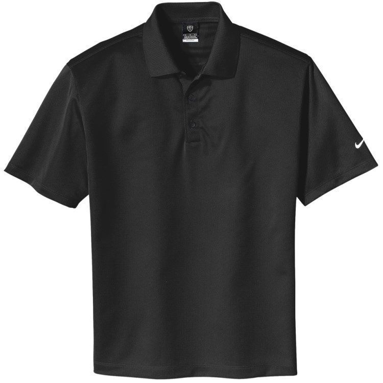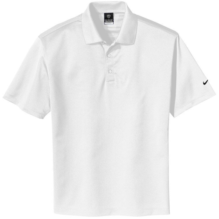 Nike Golf men's Dri-FIT polo in 5.3 oz. wicking fabric. Nike Golf 203690 polo has a flat knit collar, a 3 button placket, pearlized buttons, and Nike Golf Swoosh logo on the left sleeve. Prices include custom logo embroidery.