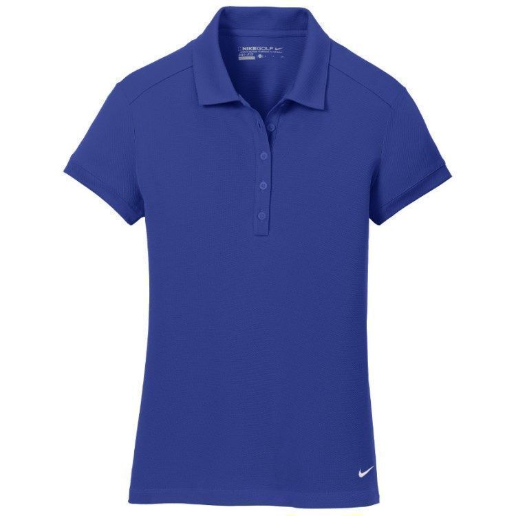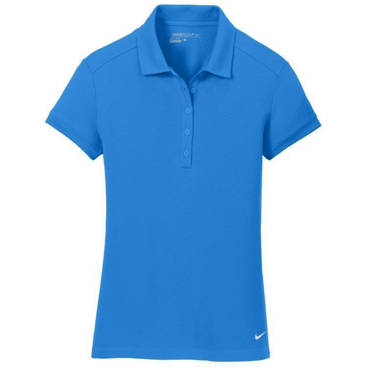 Nike Golf womens fitted pique polo in 4.7 oz. Dri-FIT pique wicking fabric. Nike Golf 746100 ladies polo has a self fabric collar, a 5 button placket, dye matched buttons, open hem sleeves and Nike Golf Swoosh logo on the left hem. Prices include custom logo embroidery.