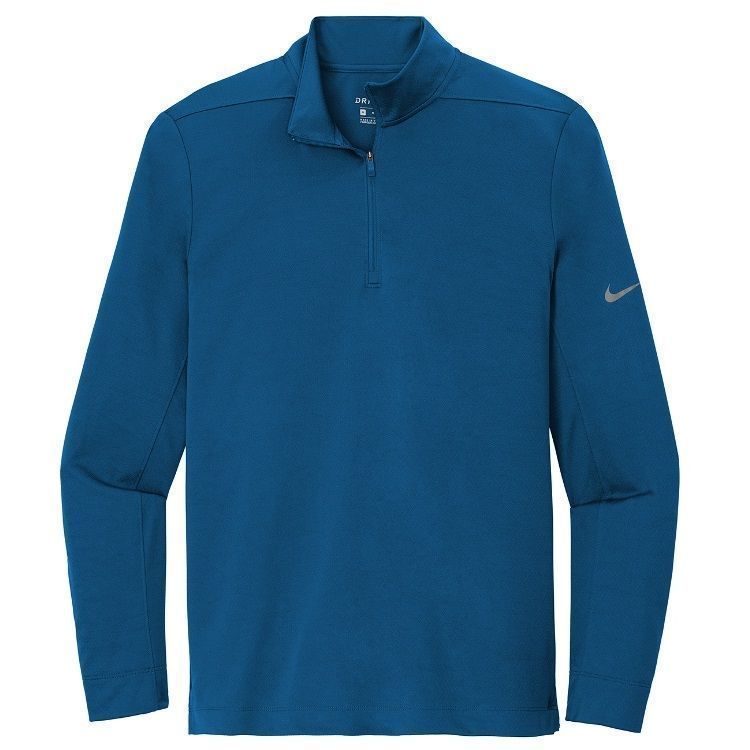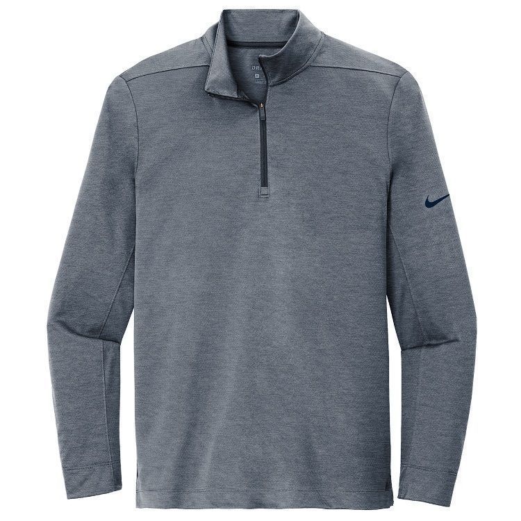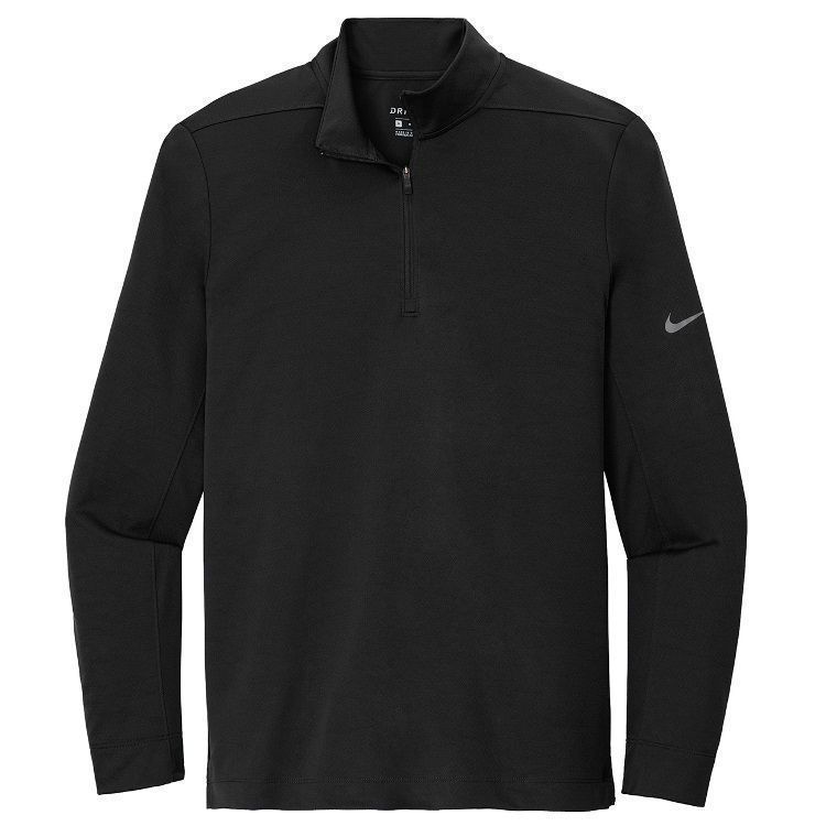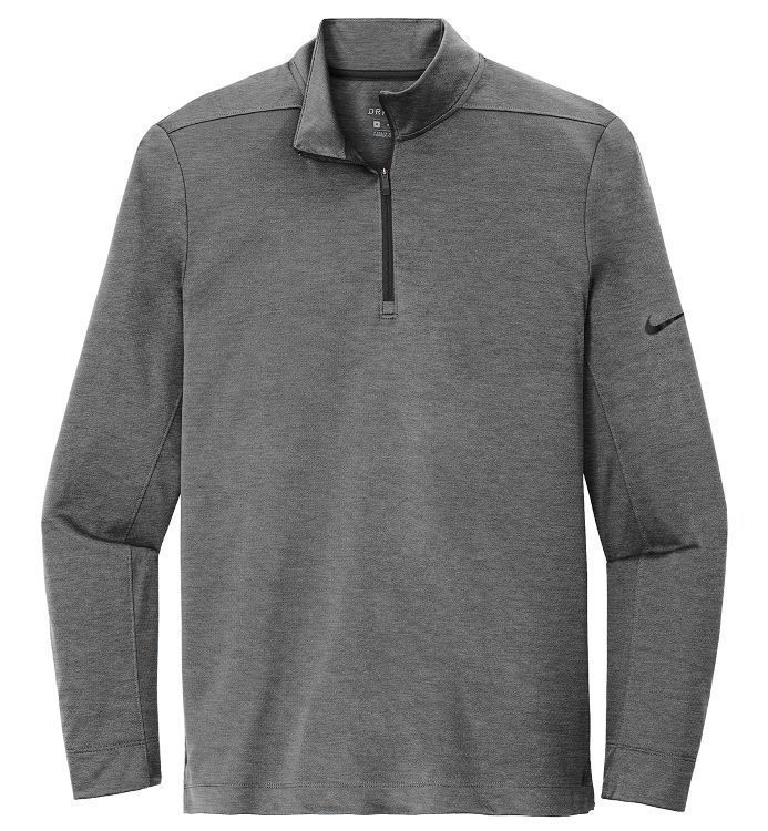 Nike Golf Dri-Fit 1/2 zip pullover 4.8 oz. polyester Dri-FIT wicking fabric with textured interior. Nike Golf NKBV6044 pullovers have a half zip front, cadet collar, reverse coil zipper,open bottom hem / cuffs, tag free heat seal label and embroidered Nike Swoosh logo on the left sleeve. Prices include custom logo embroidery.