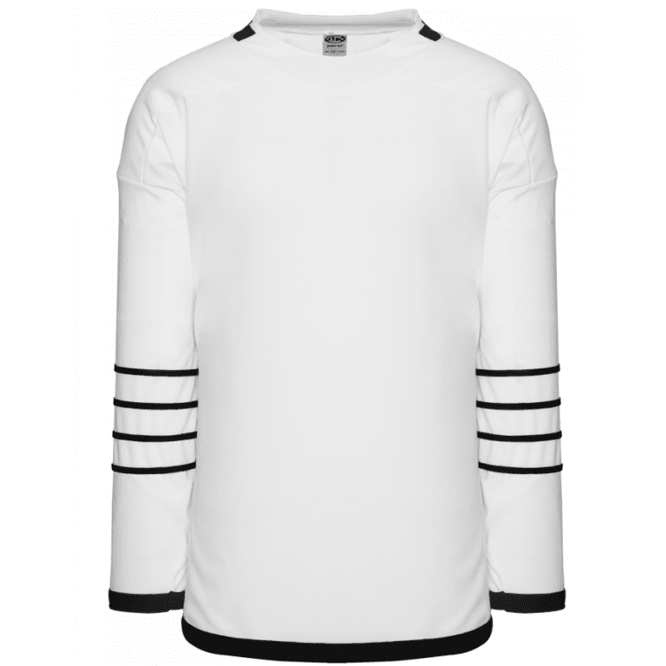 Blank NY Islanders 3rd hockey jerseys feature pro-weight AK-Knit fabric with authentic Brooklyn black striping pattern. AK NYI617B NYI618B Islanders blank hockey jerseys also feature 2-layers of material on the shoulders / elbows, sewn trim striping, a Brooklyn neck with knitted trim design and reinforced stitching. Buy blank or customize with screen printing or tackle twill logos, numbers and player names. Purchase youth through adult goalie cut sizes.