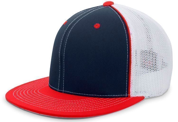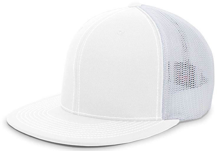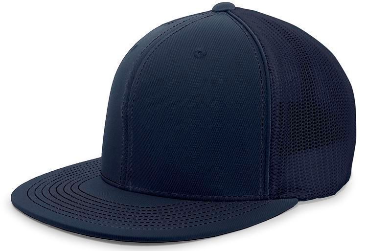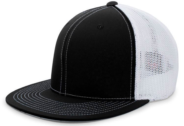 Pacific 4D5 D-Series Mesh Back Trucker Cap features polyester wicking fabric / mesh back in a oversized design. Pacific 4D5 hat has a full profile design, half piping, flat visor, flex-fit style, Pro-stitch finish, wicking sweatband and a contrast color under visor.