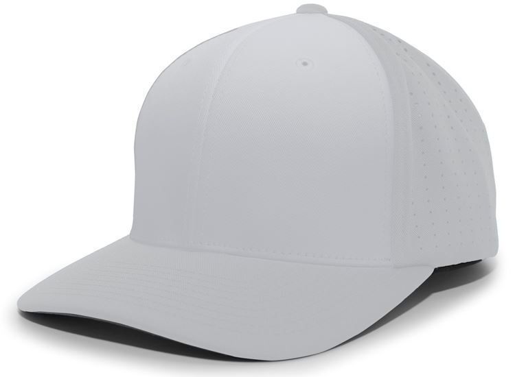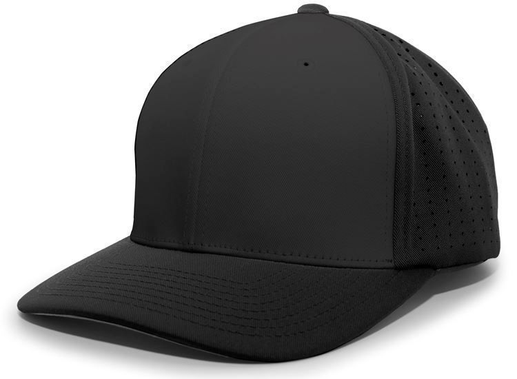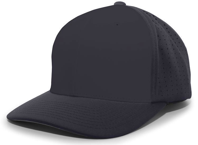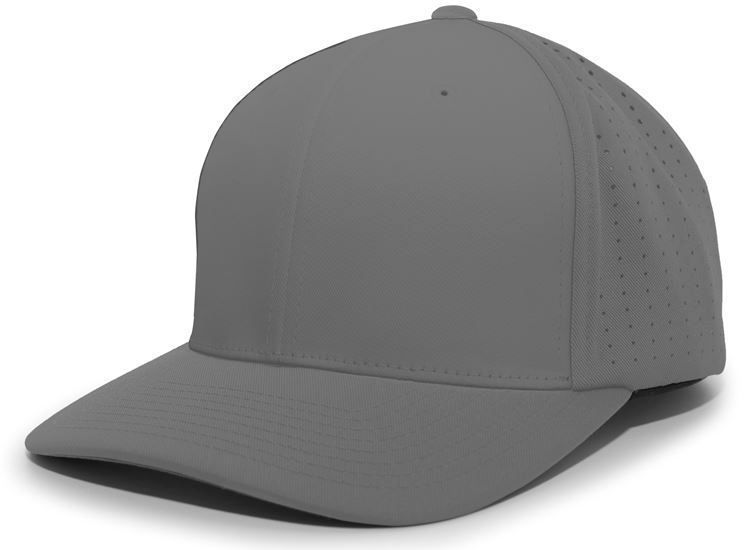 Pacific ES474 Perforated F3 Lite Stretch Baseball Cap features polyester wicking fabric / perforated hole mesh back. Pacific ES474 has a full-profile design, flex-fit style, Pro-stitch finish, wicking sweatband and anti-glare graphite grey color under visor.