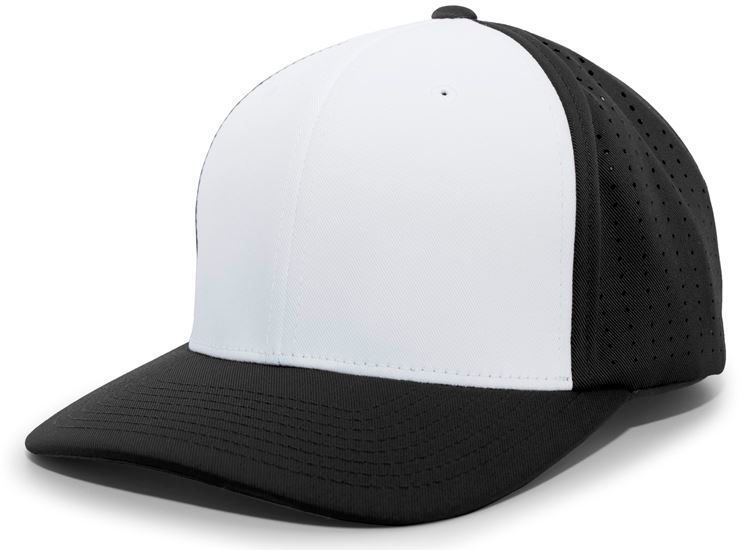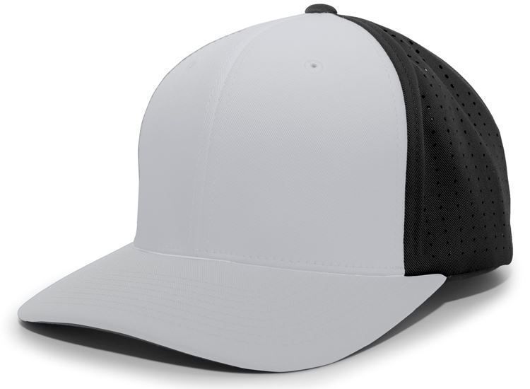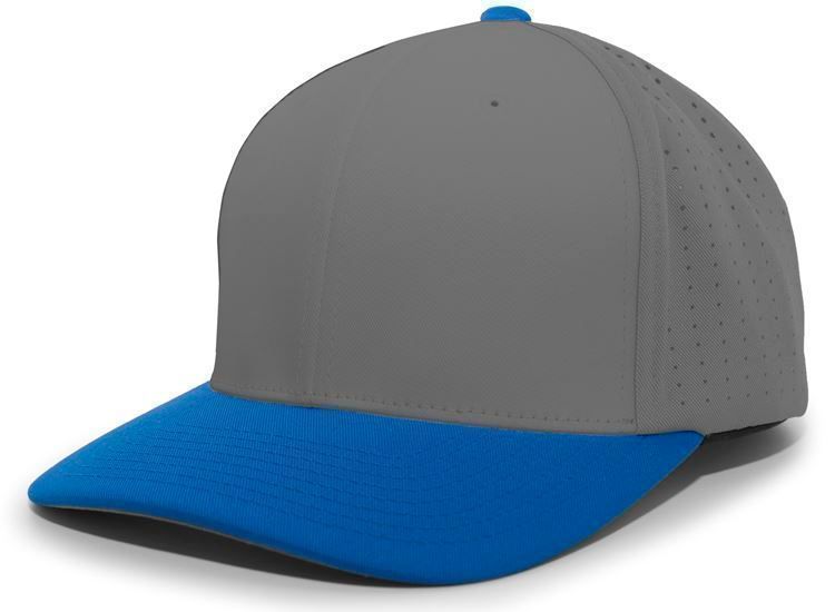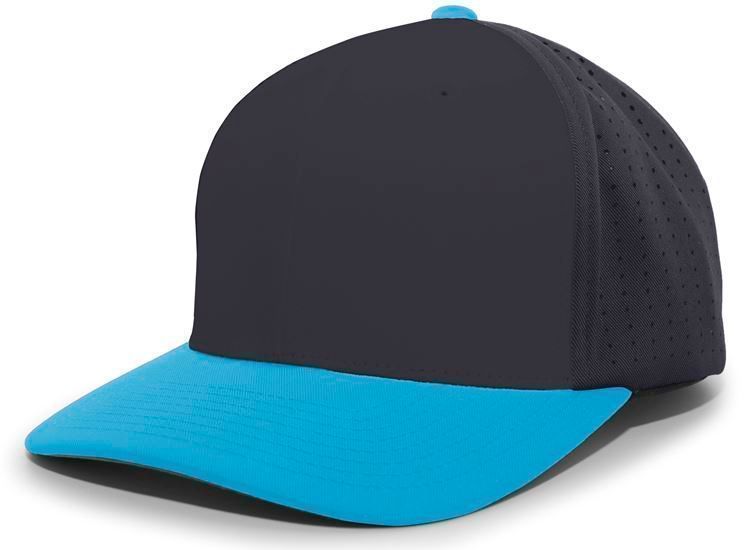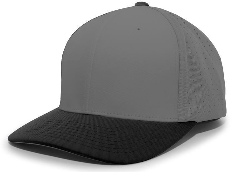 Pacific ES474T Perforated F3 Lite Stretch Baseball Cap features polyester wicking fabric / perforated hole mesh back in a 2-color design. Pacific ES474T has a full profile design, flex-fit style, Pro-stitch finish, wicking sweatband and anti-glare graphite grey color under visor.