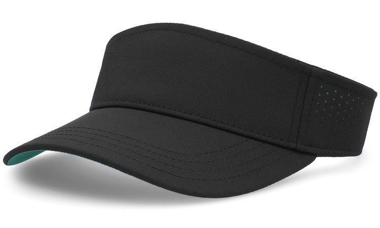 Pacific P500 Wicking Visor features an ultra lightweight wicking fabric with perforated Coolcore with contrast color undervisor design. Pacific P500 has a pre curved pro visor, wicking sweatband, water repellant finish, Velcro back and anti-glare grey color under visor.