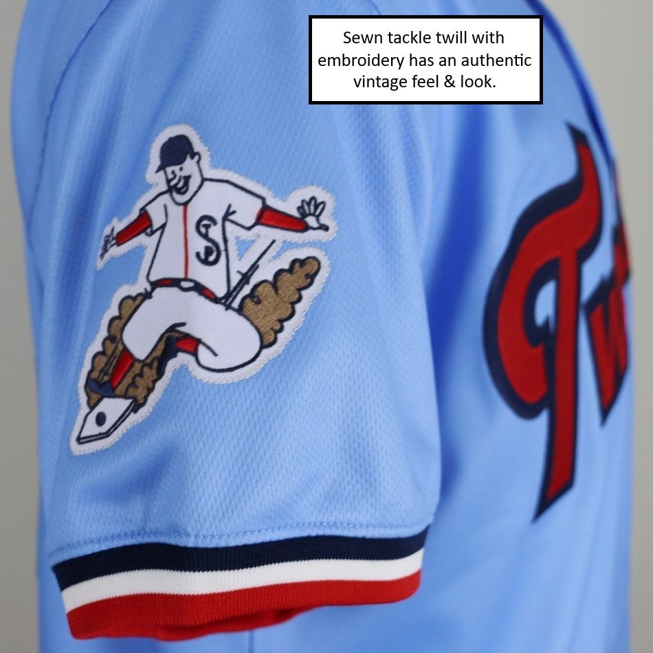 Phillies HG400-PHI custom full button baseball jerseys for adult and youth teams. Homegrown HG400-PHI retro Phillies pattern features a solid vintage blue in Dura Light Pro wicking fabric body with throwback maroon sewn braiding on the sleeve and center placket.