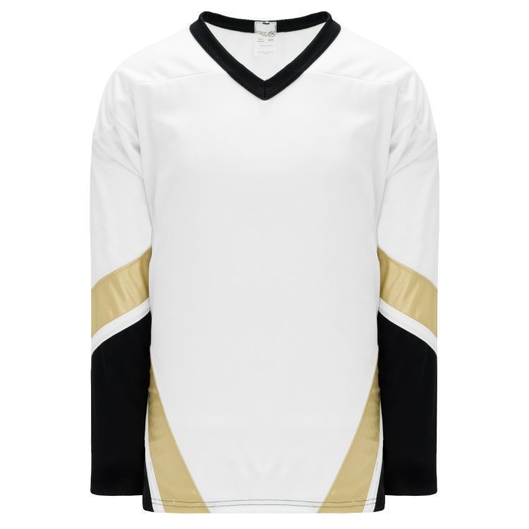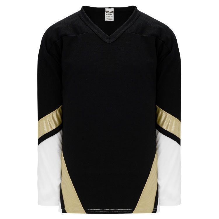 Blank Pittsburgh Penguins home and away hockey jerseys feature pro-weight AK-Knit fabric with authentic 2001-07 Penguins team pattern. AK PIT514B PIT515B Penguins blank hockey jerseys also feature 2-layers of material on the shoulders / elbows, dazzle gold inserts, v-necks with knitted trim design and reinforced stitching. Buy blank or customize with screen printing or tackle twill logos, numbers and player names. Purchase youth through adult goalie cut sizes. Made in Canada.