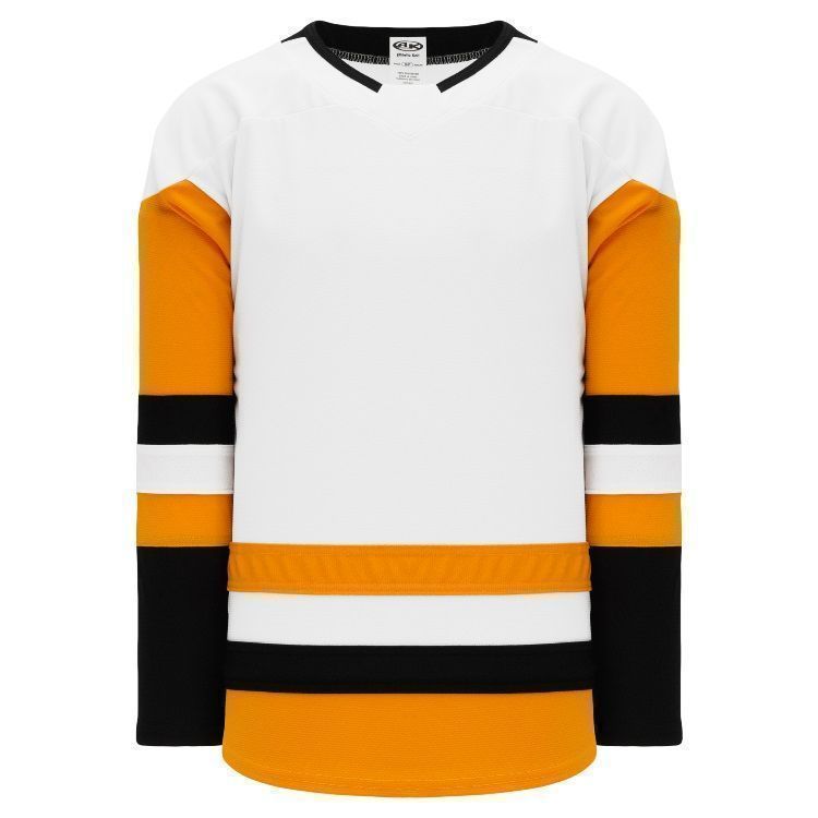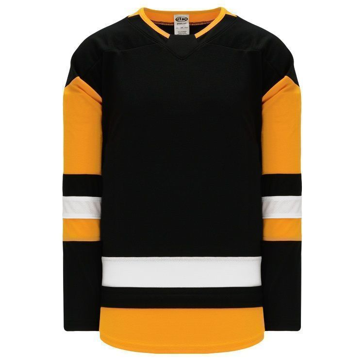Blank Pittsburgh Penguins hockey jerseys feature pro-weight AK-Knit fabric with authentic Penguins pattern. AK PIT744B PIT745B Penguins blank hockey jerseys also feature 2-layers of material on the shoulders / elbows, an edge v-neck with knitted trim design, fully sewn striping and rounded bottom. Buy blank or customize with screen printing or tackle twill logos, numbers and player names. Purchase youth through adult goalie cut sizes.