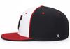 visor and 8 rows of stitching on the visor. Available in 7 fitted sizes. Product image at top left shown with optional seam piping (+$2) and custom logo (+$2).