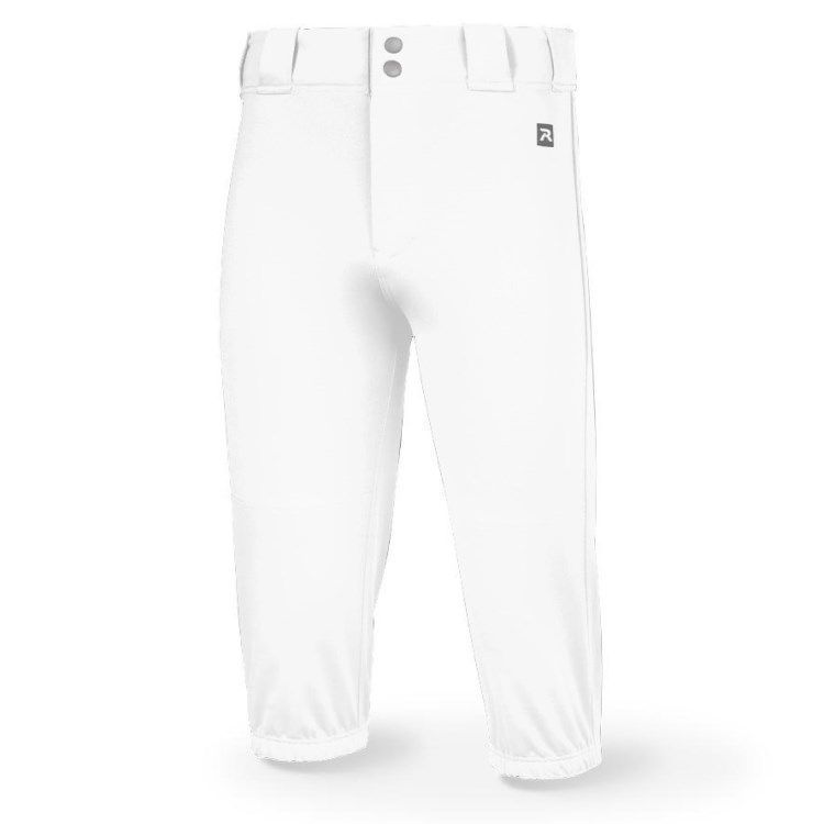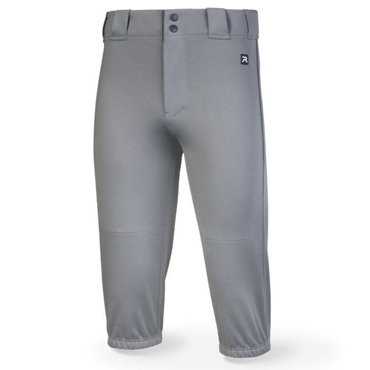 Richardson PTS8022 knicker baseball pants are made of 13oz. double knit poly spandex stretch fabric with a streamlined tapered fit. Richardson PTS8022 baseball pants also have a knicker length, 2-1/4 inch wide waistband with silicon gripper, 5 pro style tunnel belts loops, double reinforced knees, dual snap closure with zipper, two set-in back pockets with button closure and a tapered fit.