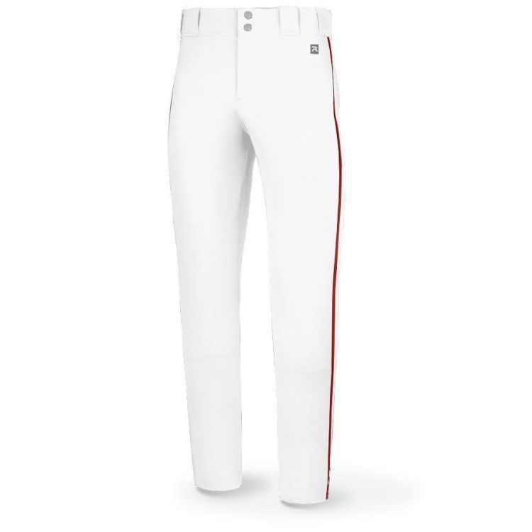 Richardson PTS8120P piped baseball pants are made of 13oz. double knit poly spandex stretch fabric with a streamlined tapered fit and side piping. Richardson PTS8120P baseball pants also have open bottom hems, 2-1/4 inch wide waistband with silicon gripper, 5 pro style tunnel belts loops, 1/8" side piping, double reinforced knees, dual snap closure with zipper, two set-in back pockets with button closure and a tapered fit.