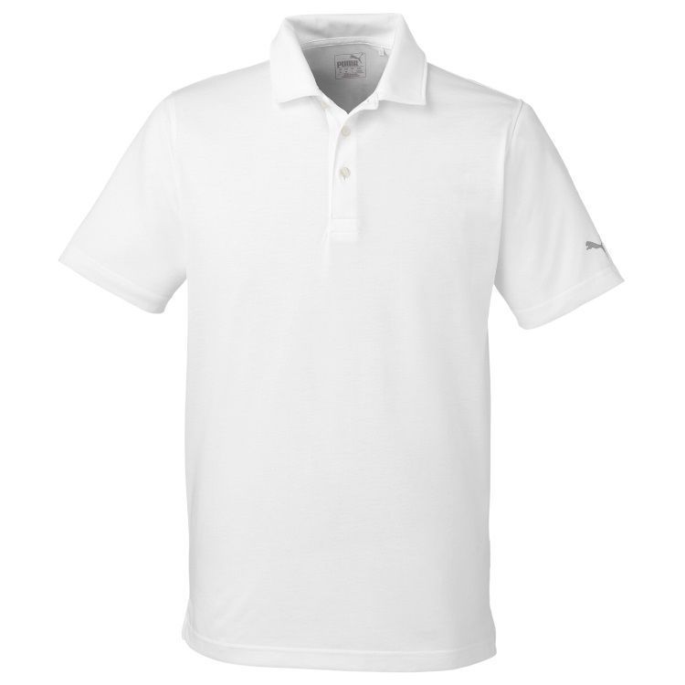 Puma Golf men's fusion polo in poly cotton wicking fabric with a subtle heather textured fabric. Puma Golf 596920 polo has a 3 button placket, ultra soft feel, mechanical stretch and Puma Golf logo on the left sleeve. Prices include custom logo embroidery.