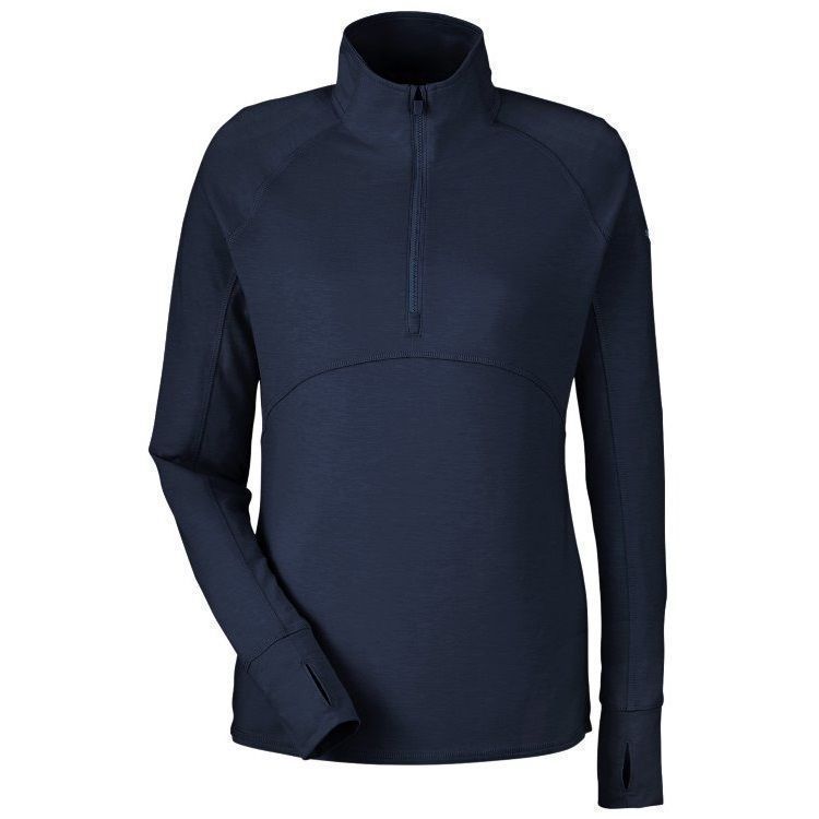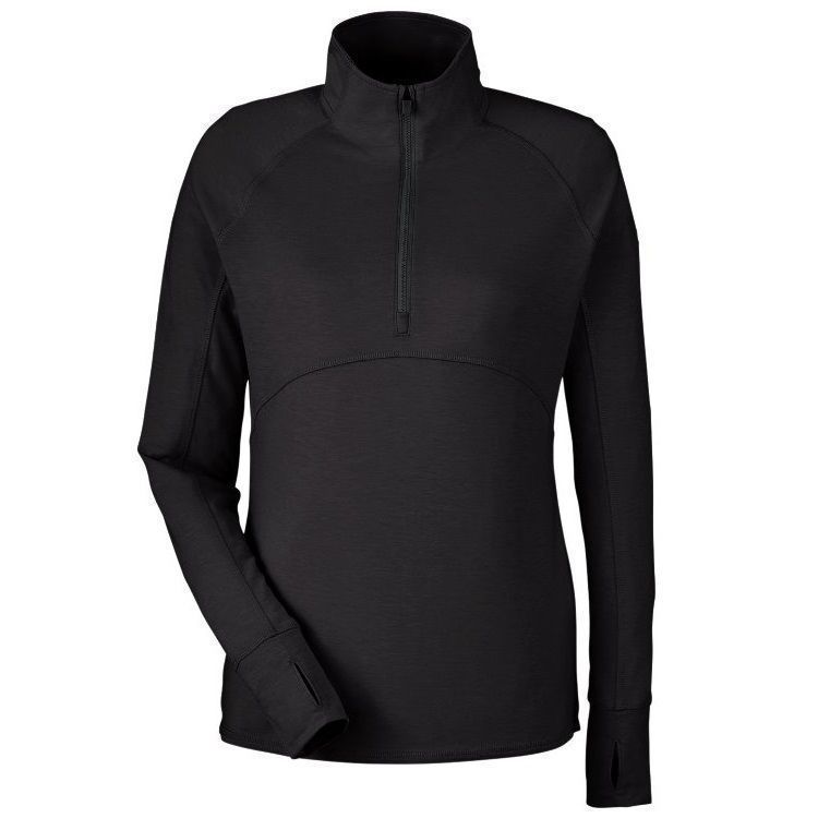 Puma Golf PG400W Bandon women's pullover in polyspandex bio-degradable wicking fabric with a solid color design. Puma Golf PG400W ladies pullover shirt has a 1/4 zip front with garage, UPF 30+ protection, 4-way stretch, side vents and Puma Golf logo on the left sleeve. Prices include custom logo embroidery.