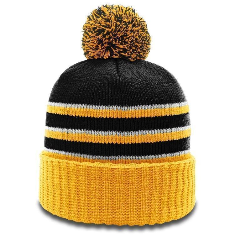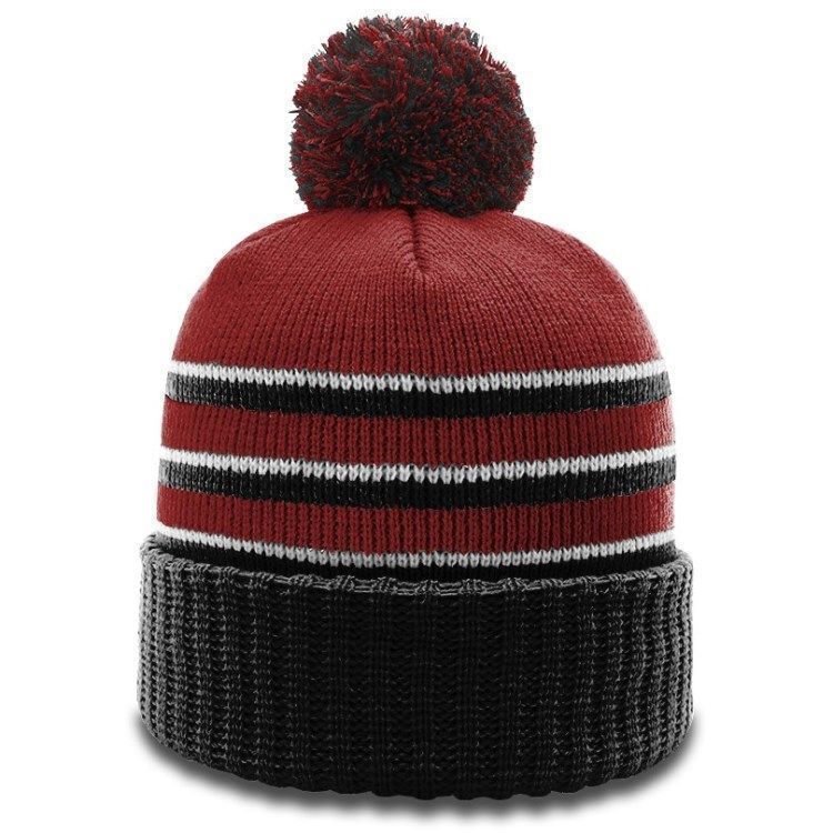 Richardson 134 Striped Beanie w/ Cuff & Pom features a cuff with 360 degrees of space for embroidery The Richardson 134 beanie has a striped design with 100% lightweight acrylic construction, that is soft and warm with a wool-like feel. One size fits most.