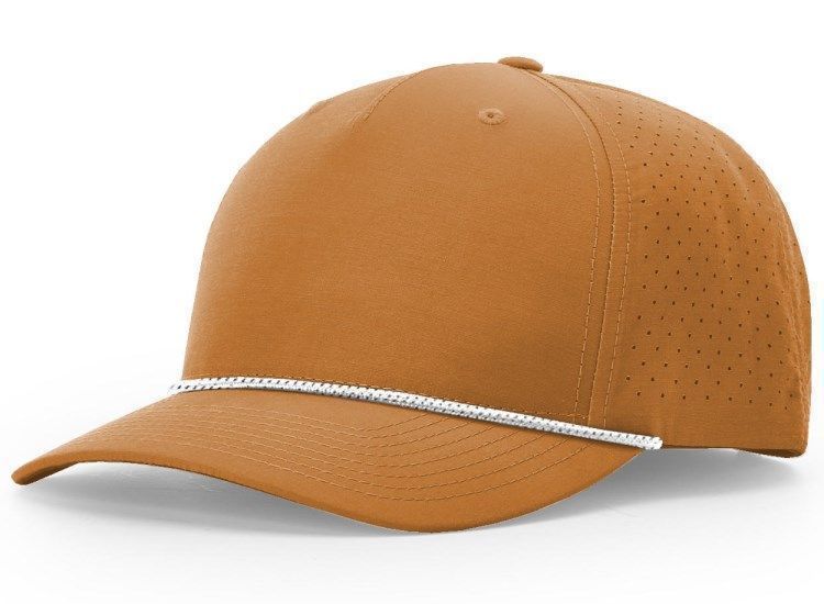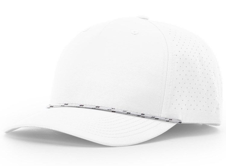Richardson 355 Golf Cap features lightweight performance nylon / cotton blended fabric with laser perforated side & back homes and Stay-Dri wicking performance sweatband. Richardson 355 golf hat has a pre curved visor, 5 panel design, speckled paracord bill rope and snap back closure.