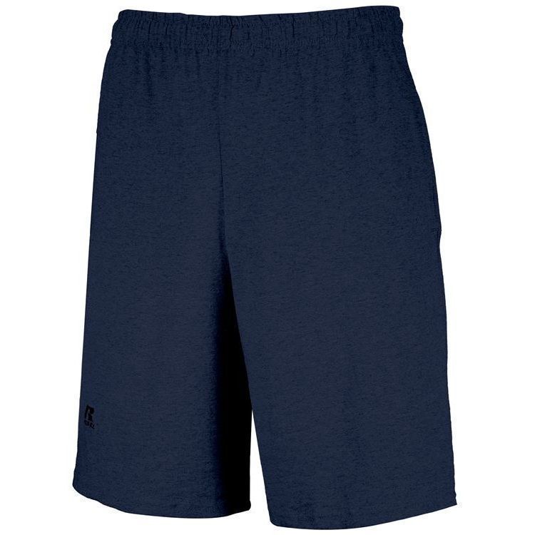 Russell Classic Cotton Shorts W/ Pockets features a 6.8 oz. cotton fabric (50/50 on black heather & oxford). Russell 25843M coaches shorts also feature two side seam pockets, covered elastic waistband with draw cord and double needle hemmed bottom. These shorts feature an 8" inseam.