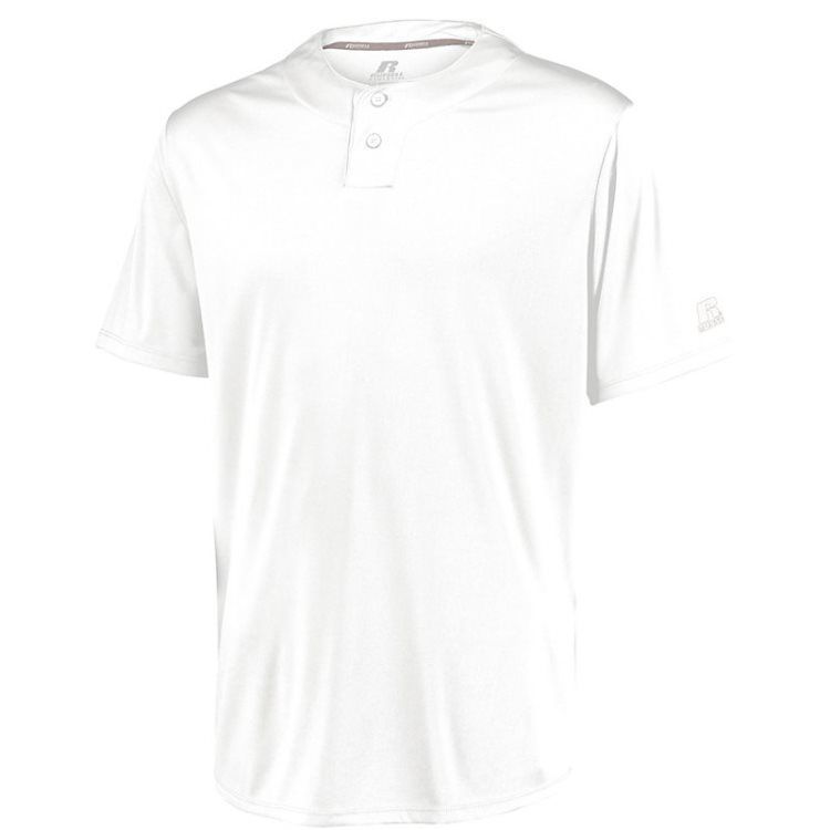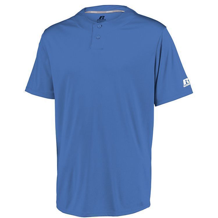 Russell 3R7X2M 2-button wicking baseball jersey is made of mid weight Dri Power wicking knit fabric. Russell 3R7X2M baseball jersey has a solid color design, two button front, raglan sleeves and tail bottom hem.