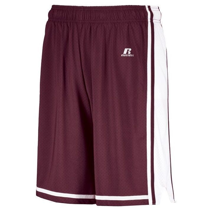 Russell 4B2VTM Legacy basketball shorts feature poly spandex fabric with Dri-Power moisture wicking technology. Russell 4B2VTM wicking basketball shorts feature a covered elastic waistband with drawcord, 8 inch inseam, side vent and contrast side stripes.