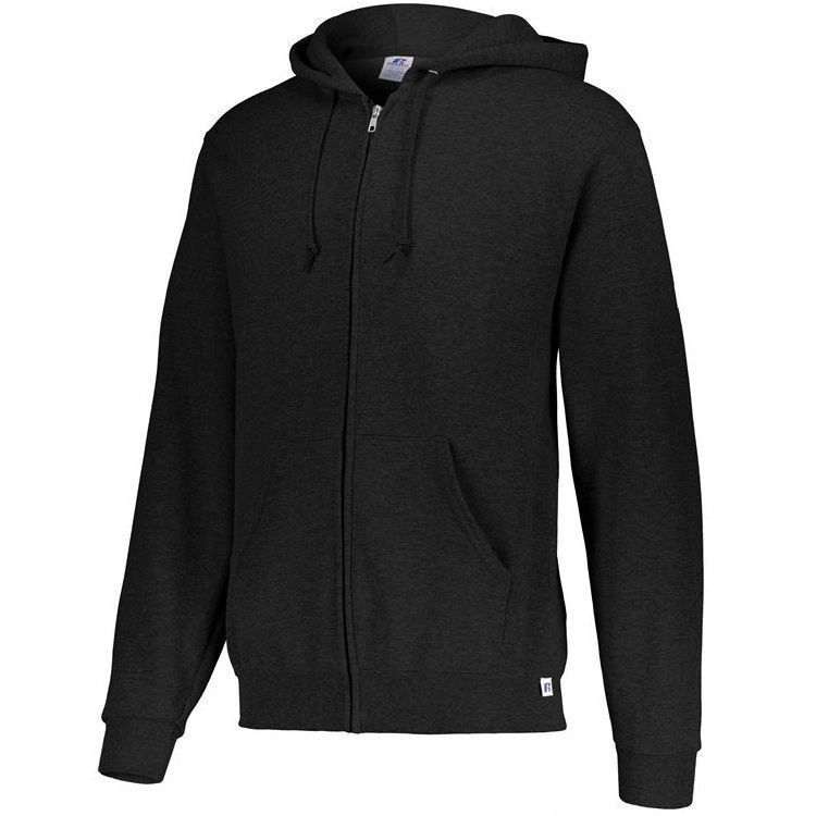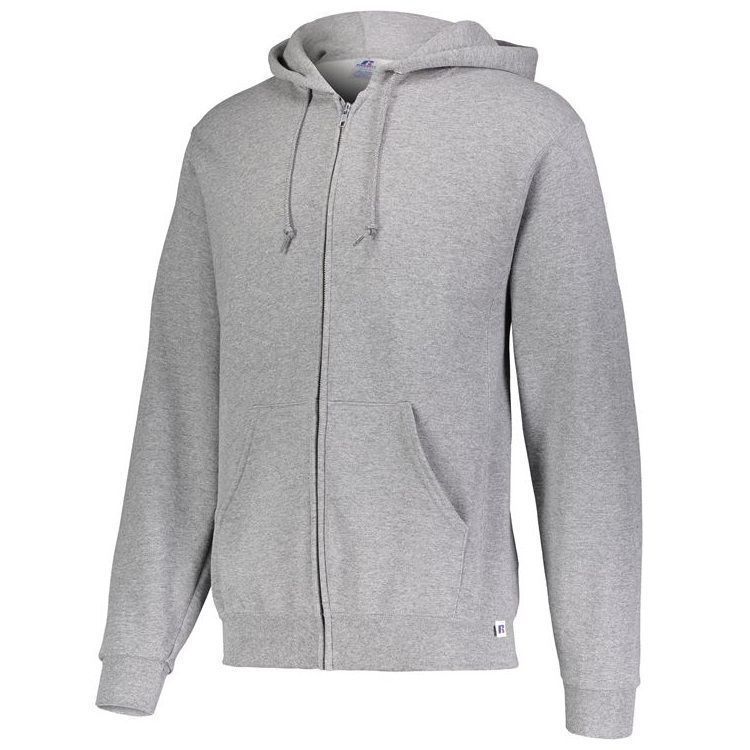 Russell 697HBM hooded sweatshirt features 9.3 oz. 50% cotton / 50% polyester Dri-Power wicking fleece. Russell Athletic Dri-Power hoodie features a 2-ply hood with drawcord, full zip design, front pockets, set-in sleeves, rib-knit cuffs / bottom band and double needle stitching.