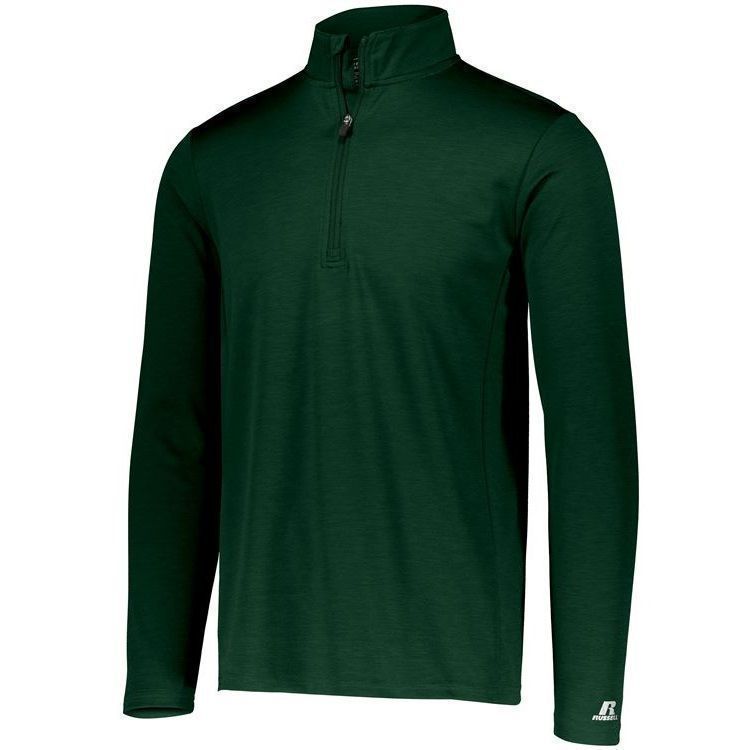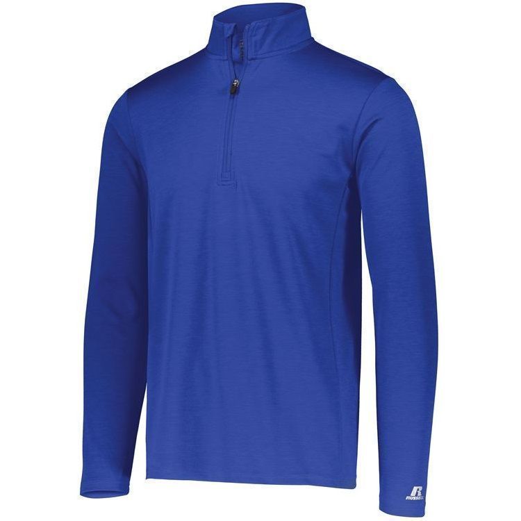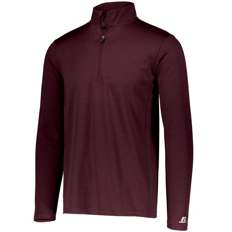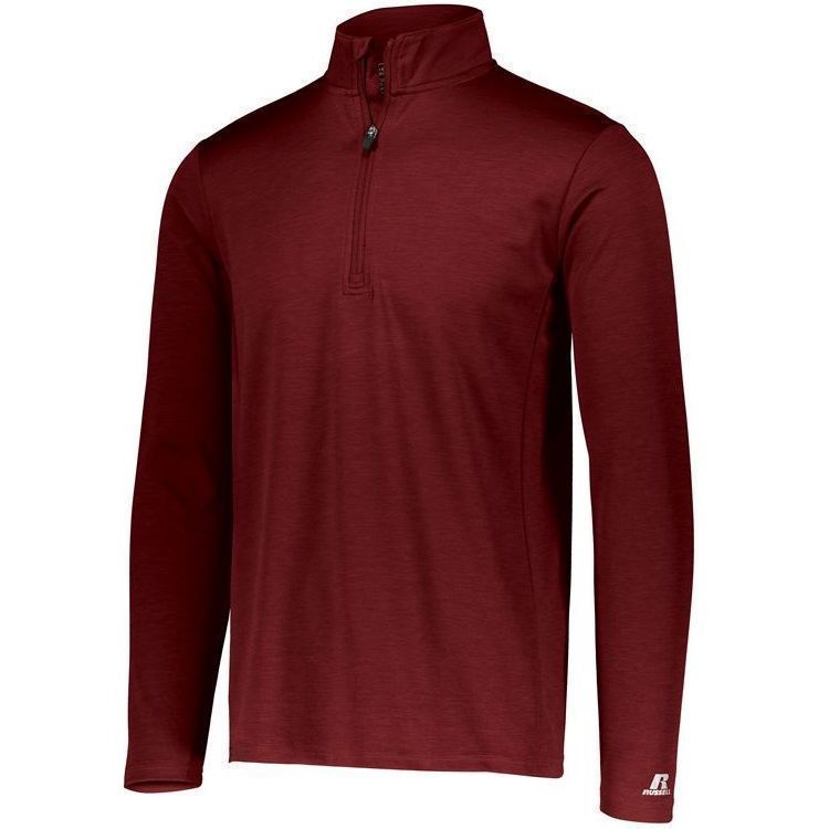 Russell QZ7EAM Dri-Power Pullover Shirt features a polyester moisture wicking 2-tone interlock heathered fabric. This Russell Dri-Power 1/4 zip long sleeve shirt has 4-way stretch fabric, odor protection, zipper front with garage, set in sleeves and double stitching. Tagless heat-seal label.
