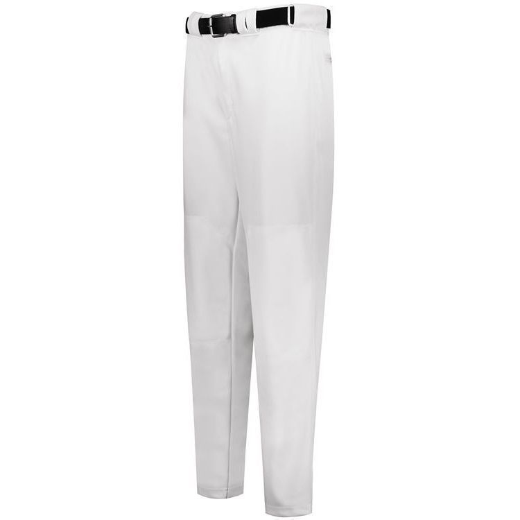 Russell R10LGM Diamond Series 2.0 baseball pants are made of 13 oz. double knit stretch fabric in a solid color design. Russell R10LGM baseball pants have open bottom hems, 2-1/4 inch wide waistband with silicon gripper, 7 pro style tunnel belts loops, double reinforced knees, dual snap closure with zipper, two set-in back pockets with button closure and a relaxed fit.