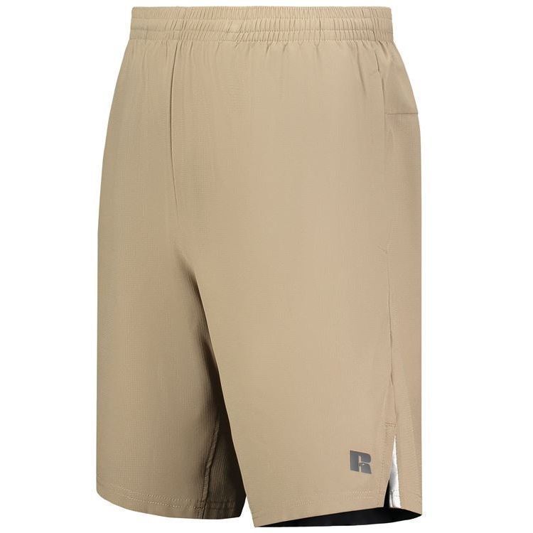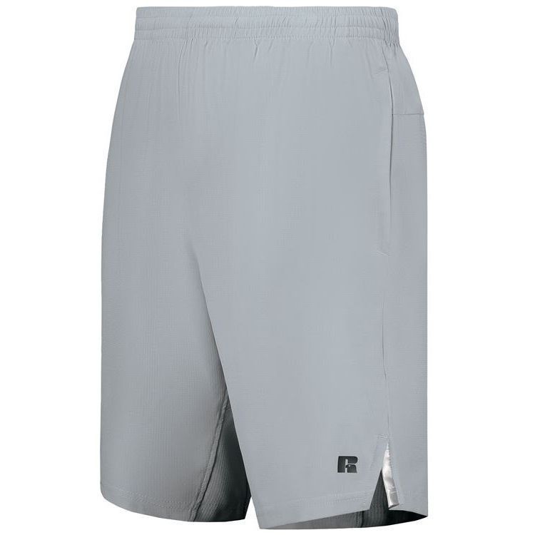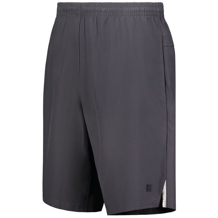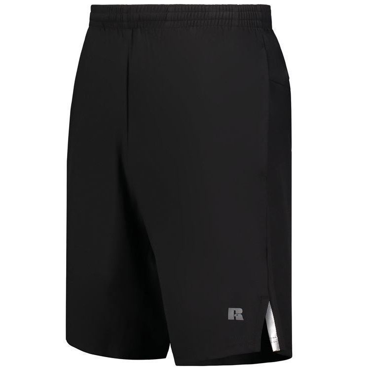 Russell Legend Coaches Shorts w/ Pockets features 4-way stretch woven fabric with a durable water-repellent finish to keep you dry and comfortable. Russell R20SWM coaches shorts also feature two deep side pockets, zippered back pocket, covered elastic waistband with draw cord, reflective v-notch at sides and double needle hemmed bottom. These shorts feature an 8-1/2" inseam.