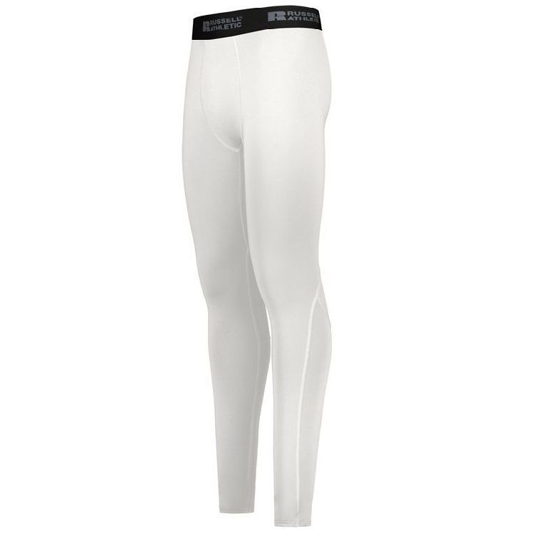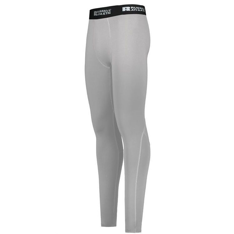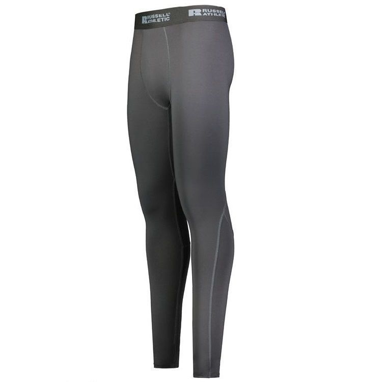 Russell R25CPM Compression Tights are constructed of a 84% polyester / 16% Xtreme compression blend with Coolcore wicking technology and mesh inserts at back of knees. These full length tights also feature 4-way stretch, 50+ UPF protection, antimicrobial finish for low odor, 2 inch elastic waistband and flat lock stitching. The soft brushed back elastic waistband minimizes chafing, and the three-needle coverstitching at the leg opening allows for stretch and durability.