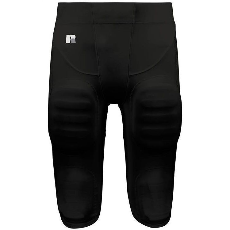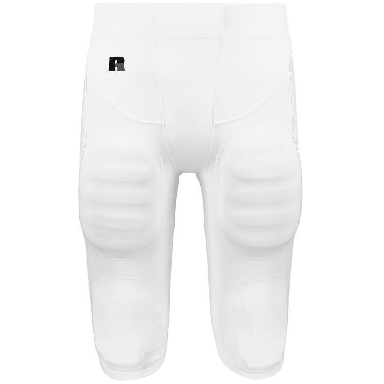 polyester double knit / 18% spandex fabric for a pro-style fit. These pants also feature an enveloped thigh and kneed pocket system to keep pads firmly in place. Russell R26XPM football pants also feature a beltless 2-1/4 waistband, mesh back yoke / legs, no fly front, elastic waist gripper to keep jersey tucked and Russell logo on right hip. These pants were designed for competitive / full contact football.