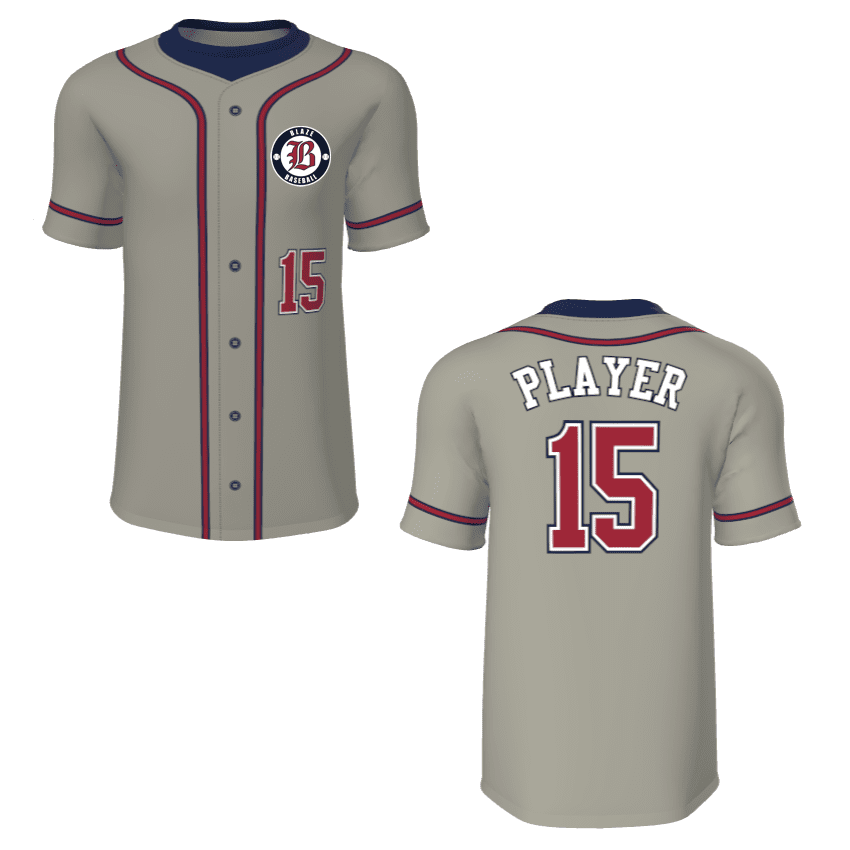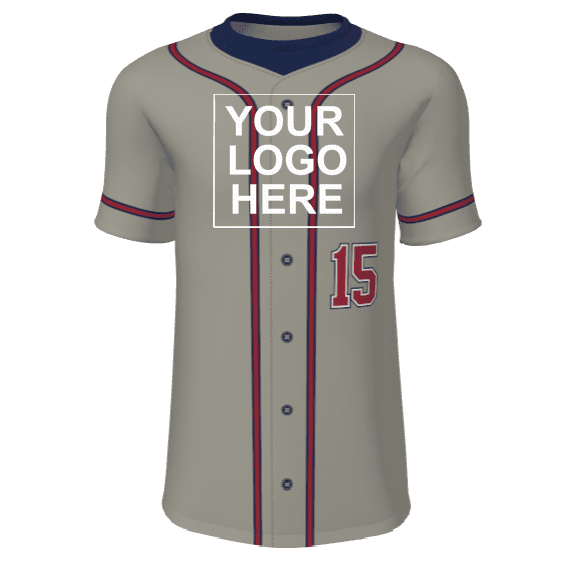 Juice JPL-004 sublimated baseball jerseys for adult and youth teams. Sublimated baseball jerseys are perfect for youth little league through adult leagues. Juice JPL-004 pattern features button down look, placket / sleeve stripes and allows for a front custom logo, front lower left number with player name / number on the back.