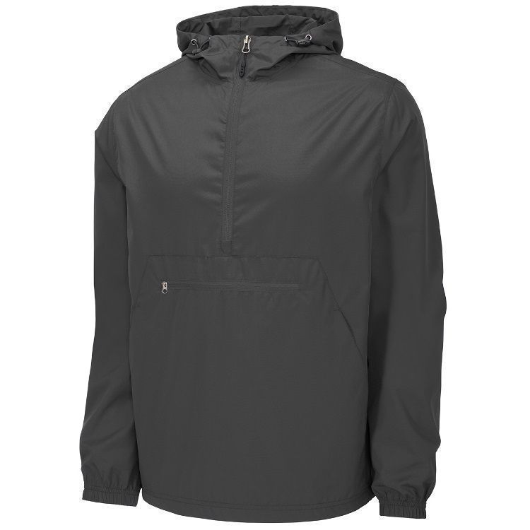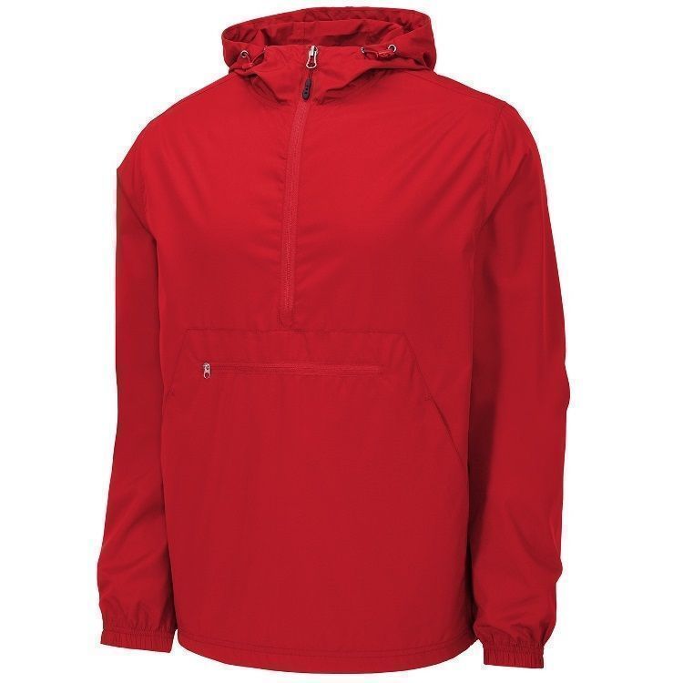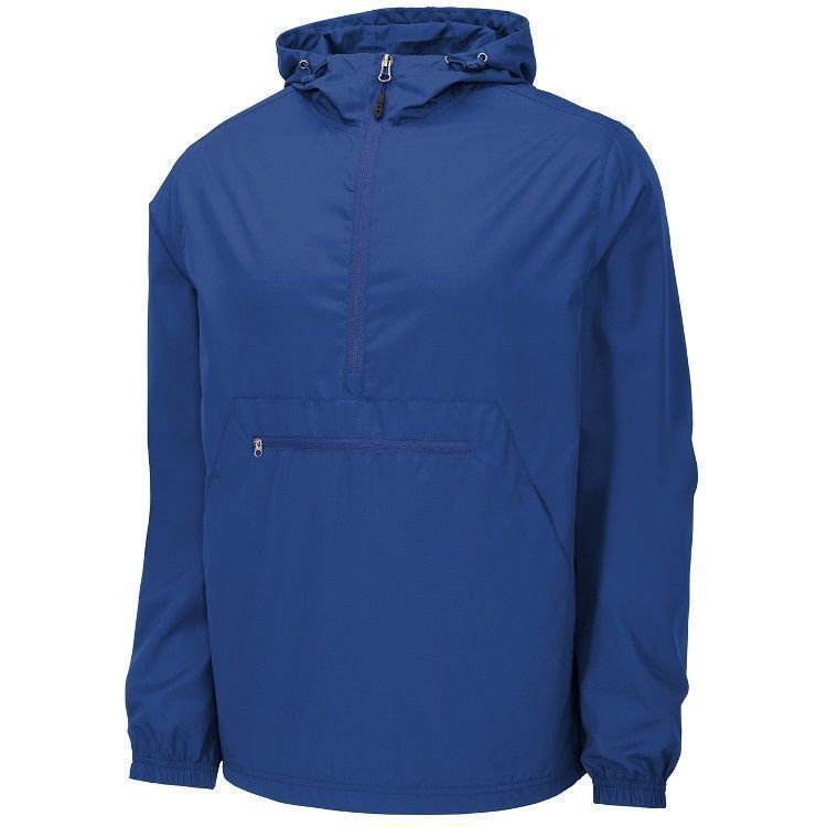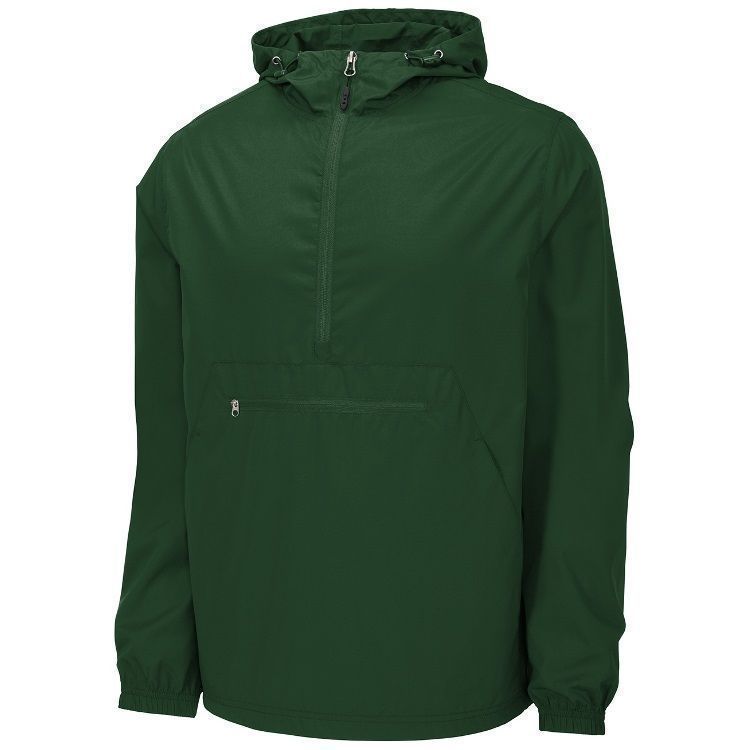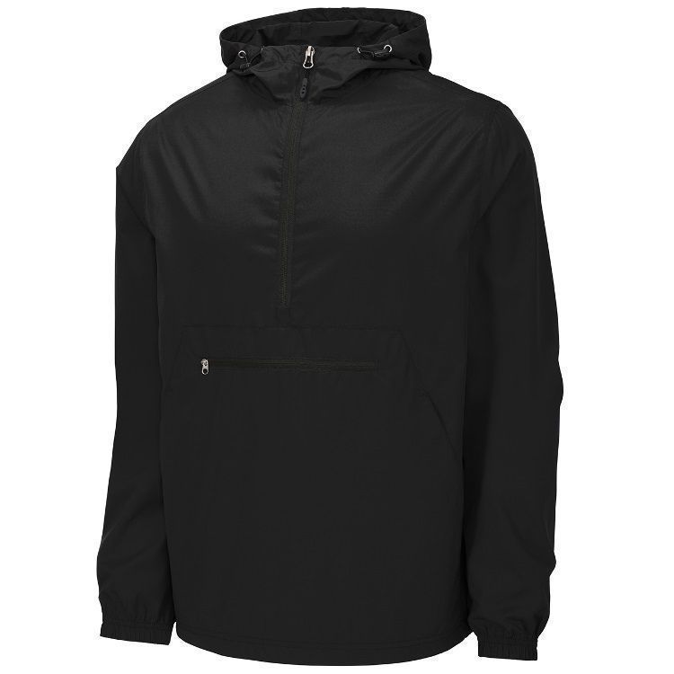 Sport-Tek JST66 1/2 Zip Packable Hooded Wind Jacket features a 100% polyester shell with 3-panel hood with drawcord and toggles. Sport-Tek JST66 jacket also packs into front zippered pocket and features elastic cuffs, extended reverse coil zipper for easy on / off, front pocket and a bottom drawcord with toggle.