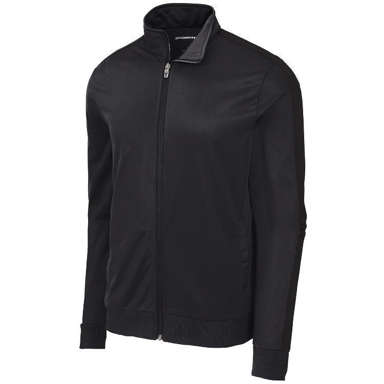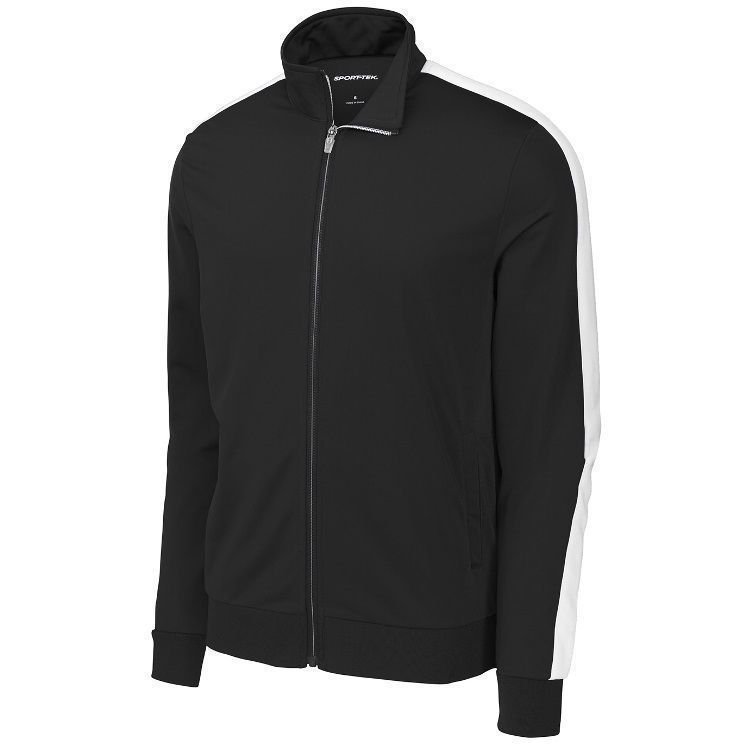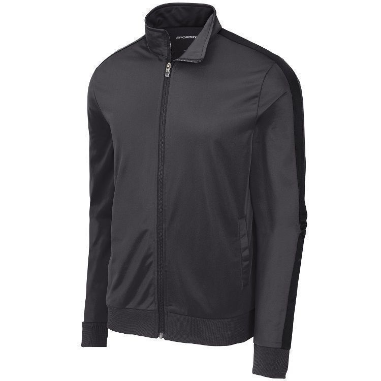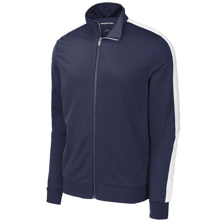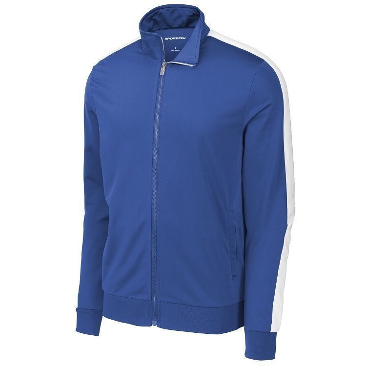 Sport-Tek JST94 Striped Sleeve Brushed Tricot Track Jacket features a 100% brushed Tricot polyester for a soft touch and feel. Sport-Tek JST94 YST94 jacket also features wide rib knit cuffs, full zip front with cadet collar, striped sleeve design, front pockets and a wide rib knit bottom.