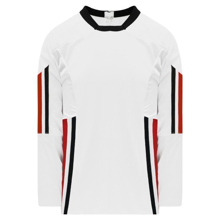 Team Canada 2008 blank hockey jerseys feature pro-weight AK-Knit fabric with side sublimated pattern worn by Team Canada. AK CAN839C CAN840C CAN841C blank hockey jerseys also feature 2-layers of material on the shoulders / elbows, a box neck design, underarm mesh gussets and a rounded back hem. Buy blank or customize with screen printing or twill. Choose from youth through adult goalie sizes.