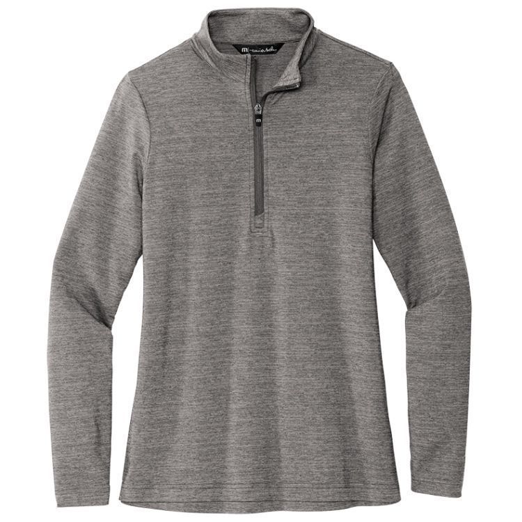 TravisMathew TM1WW003 Crestview Women's Pullover in polycotton quick dry fabric in a solid color design. TravisMathew Crestview Ladies Pullover has a 1/4 zip front, zip through collar, reverse coil zipper with TM pull and TM woven logo on the left hem. Prices include custom logo embroidery.