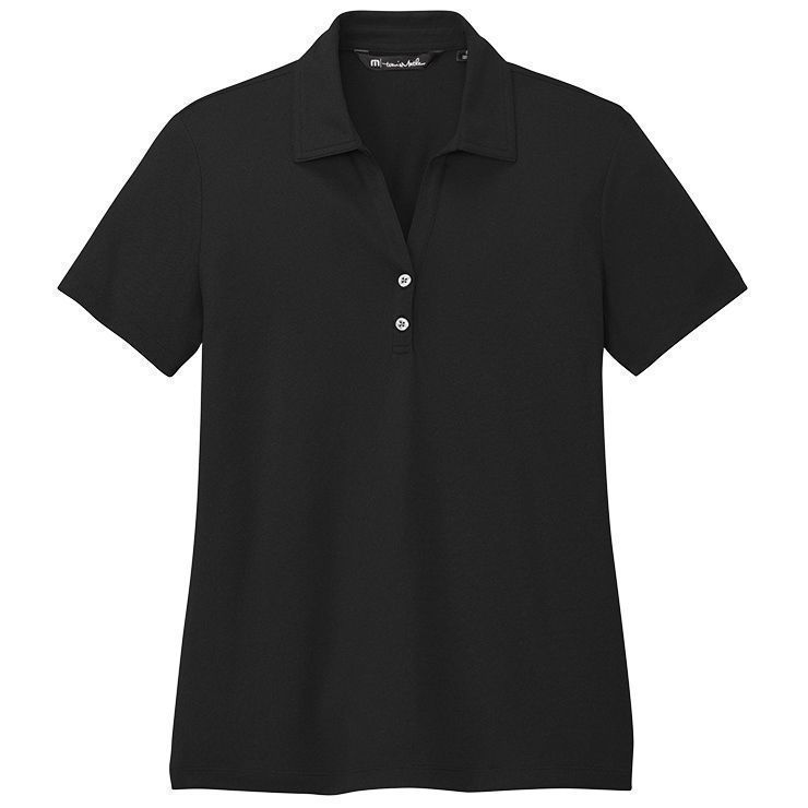 TravisMathew TM1WX002 Coto Women's Polo in polyester quick dry wicking fabric in a solid color design. TravisMathew Coto ladies polo has a 2 button placket with matching buttons, self fabric collar, side vents with drop hem, open hem sleeves and TM logo on the left sleeve and center back neck. Prices include custom logo embroidery.