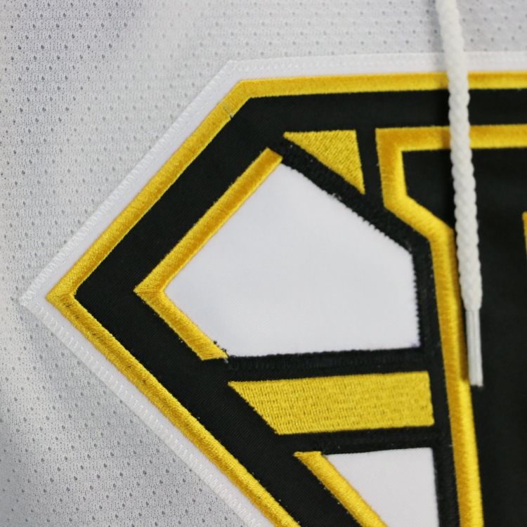 Custom tackle twill applique crests are available in up to 13 inches in size and can be applied to all Athletic Knit hockey jerseys. Custom tackle twill applique crests feature a combination of cut pieces of twill along with stitched embroidery. These patches are a high end decoration option available for AK hockey jerseys. Twill applique crests are reserved for less complex designs.
