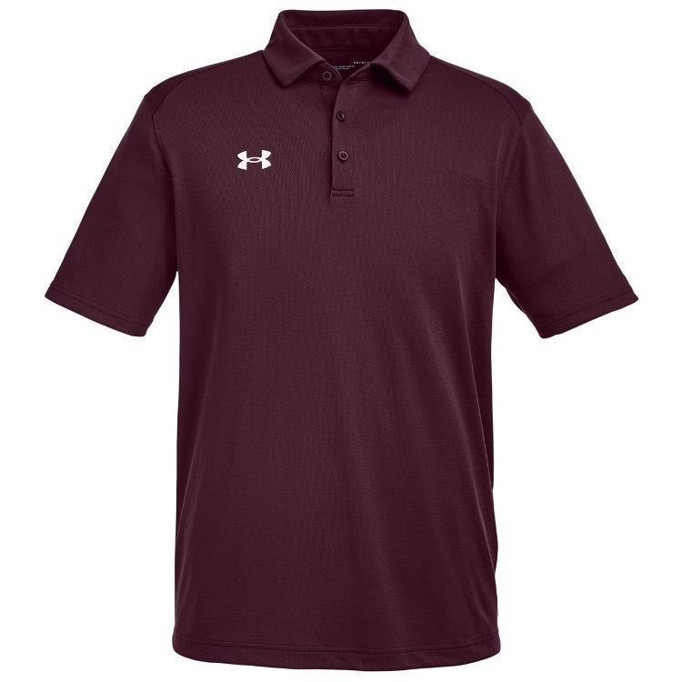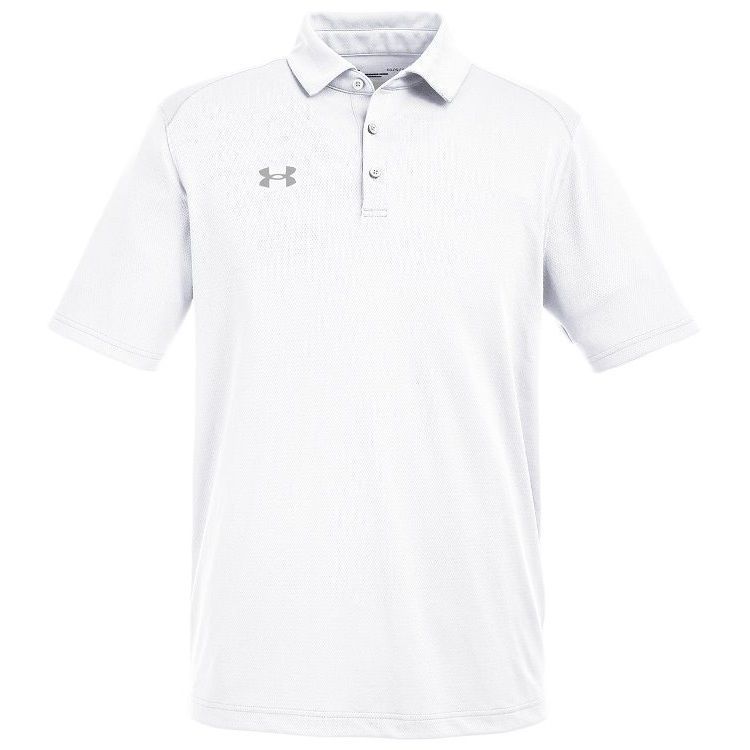 Under Armour Golf tech polo in textured wicking fabric with antimicrobial technology. UA Golf 1370399 polo has a slight textured finish, self fabric collar, a 3 button placket, open hem sleeves and UA logo on the right chest. Prices include custom logo embroidery.