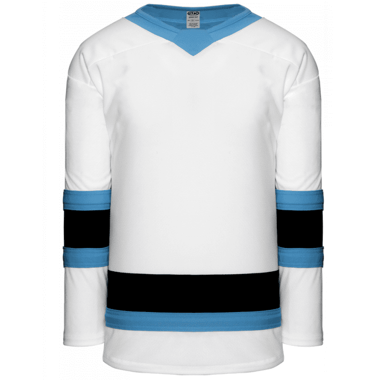Blank Utah Mammoth home and away hockey jerseys feature pro-weight AK-Knit fabric with authentic sewn Utah striping pattern. AK UTA780B UTA781B Utah blank hockey jerseys also feature 2-layers of material on the shoulders / elbows, edge style necks with knitted trim design and rounded bottom hems. Buy blank or customize with screen printing or tackle twill logos, numbers and player names. Purchase youth through adult goalie cut sizes.
